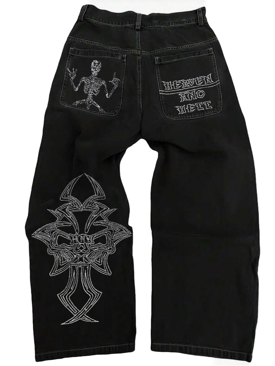 [Trendy Design: Y2K Beggy Jeans with Skull Embroidery Gothic Design perfect for Hip Hop and Streetwear. Premium Quality Material: Made of high-quality denim material to ensure durability and long-lasting wear. "Comfortable Fit: Straight Wide Leg Trouser style provides the perfect combination of style and comfort that youll love." "Versatile Wear: Perfect for a variety of occasions whether youre headed out on the town or just running errands." Unique style: Emo Clothes for men these Y2K Beggy Pants is complete with statement-making details that will set you apart from the rest.]
